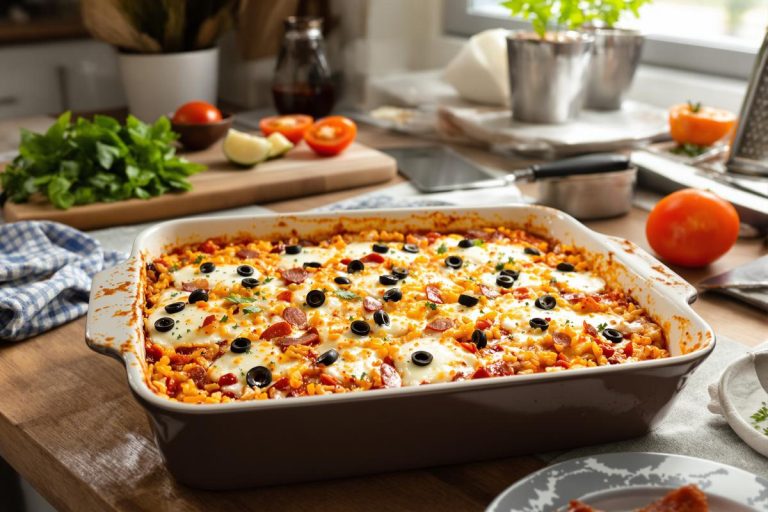 « Doré et croustillant » : mon gratin de riz façon pizza aux tomates et mozzarella