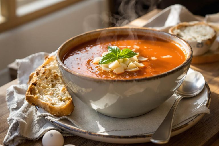 « Bluffante » : ma soupe de tomates épaissie au riz et servie avec copeaux de parmesan